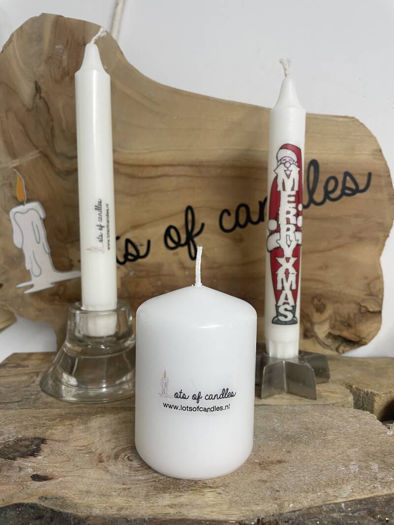 Kaars met eigen logo en/of tekst gaat op aanvraag en duurt wel iets langer om te maken maar dan heb je wel iets unieks vraag via onderstaande formulier wat er mogelijkheden zijn.