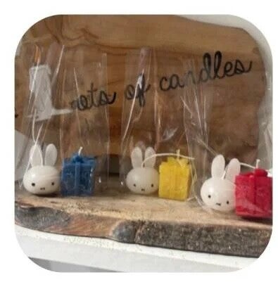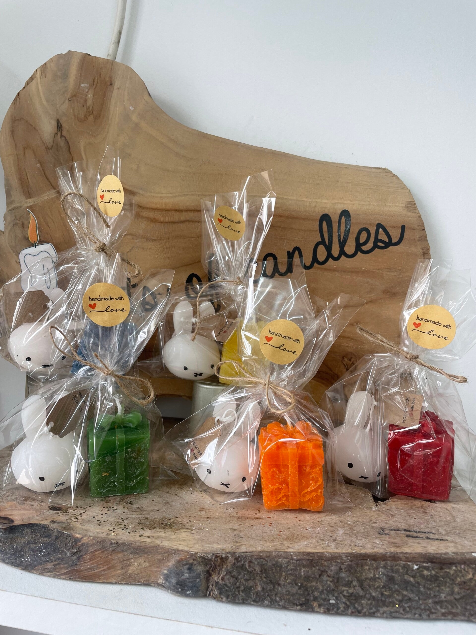 Een leuke kaars die de vorm heeft van nijntje en een cadeautje.