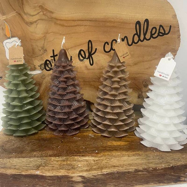 Leuke "kerst" bomen met of zonder sneeuw. Ze zijn gemaakt van Parafine /stearine en hebben een lange brandtijd.