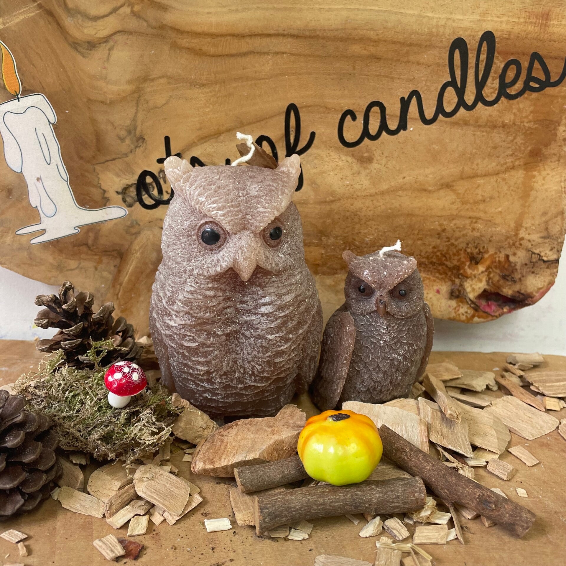 Een leuke kaarsen die de vorm heeft van een Uil. Ze zijn gemaakt van Parafine /stearine en hebben een lange brandtijd.