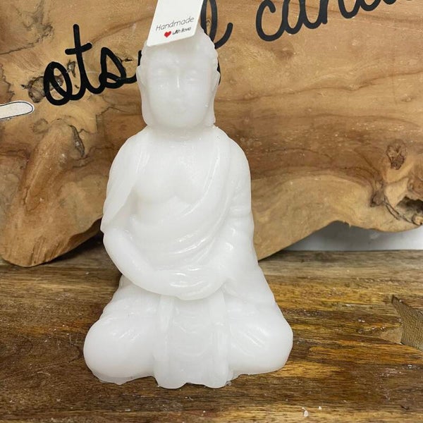 Een leuke kaars die de vorm heeft van een buddha zittend. Ze zijn gemaakt van Parafine /stearine en hebben een lange brandtijd.