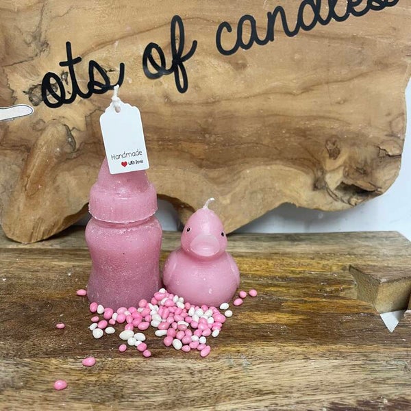 Een leuke kaars die de vorm heeft van een baby flesje. Ze zijn gemaakt van Parafine/stearine en hebben een lange brandtijd.