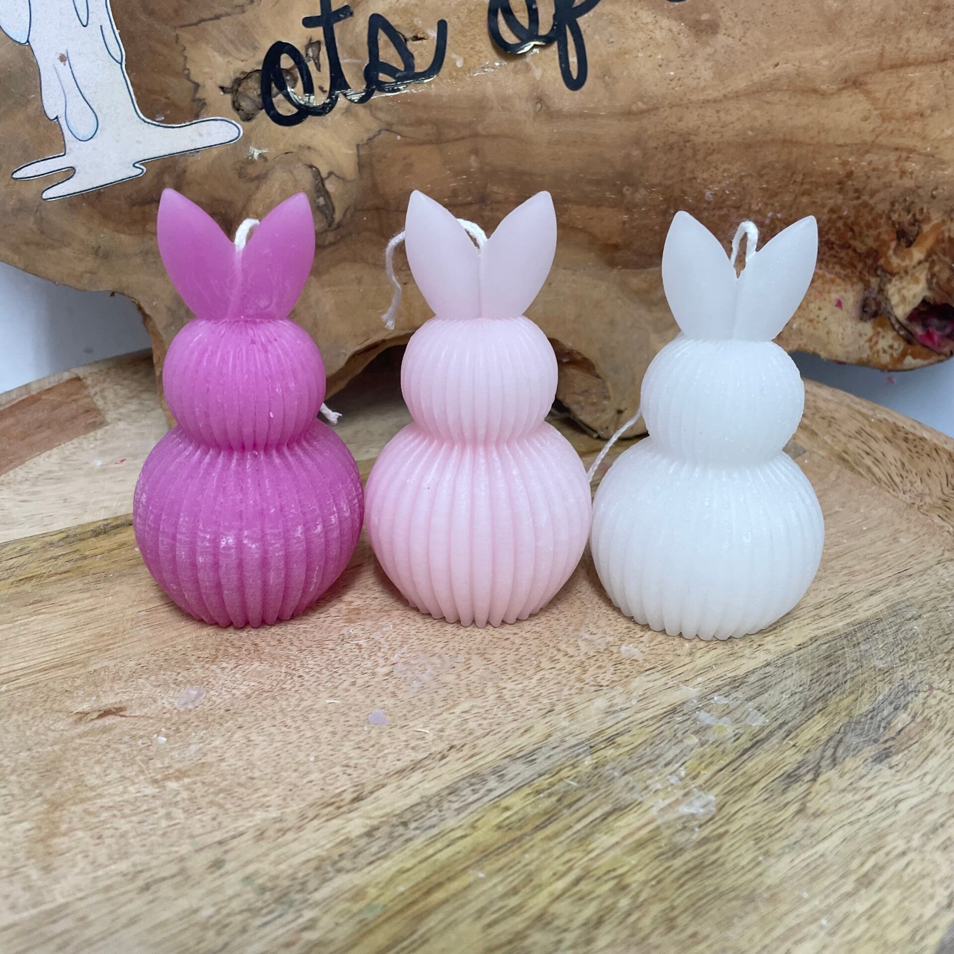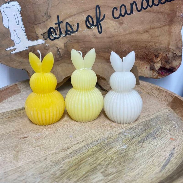 Een leuke kaars die de vorm heeft van een paashaasje ribbel. Ze zijn gemaakt van Parafine /stearine en hebben een lange brandtijd.