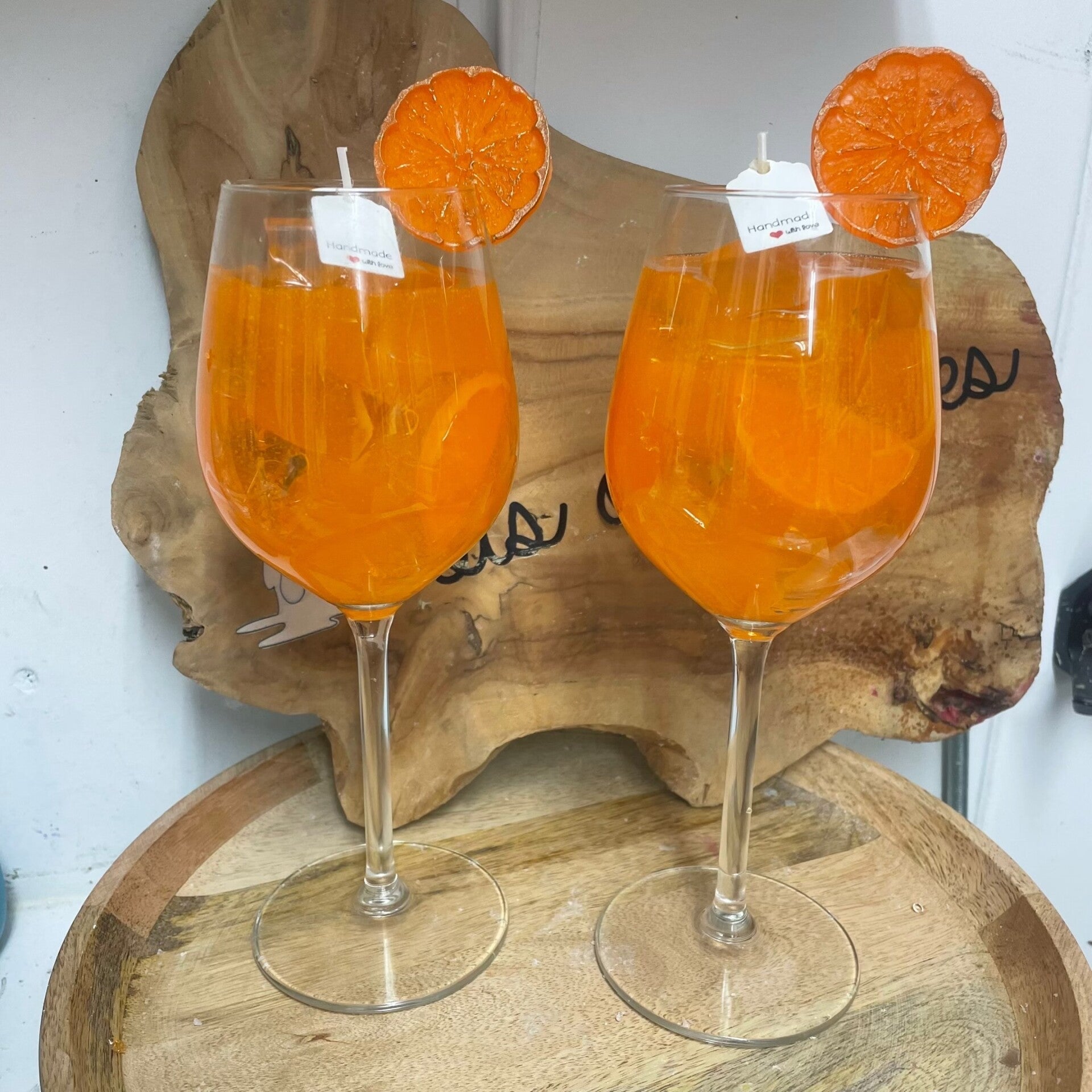 Leuke gelkaars gegoten als een Aperol sprits.