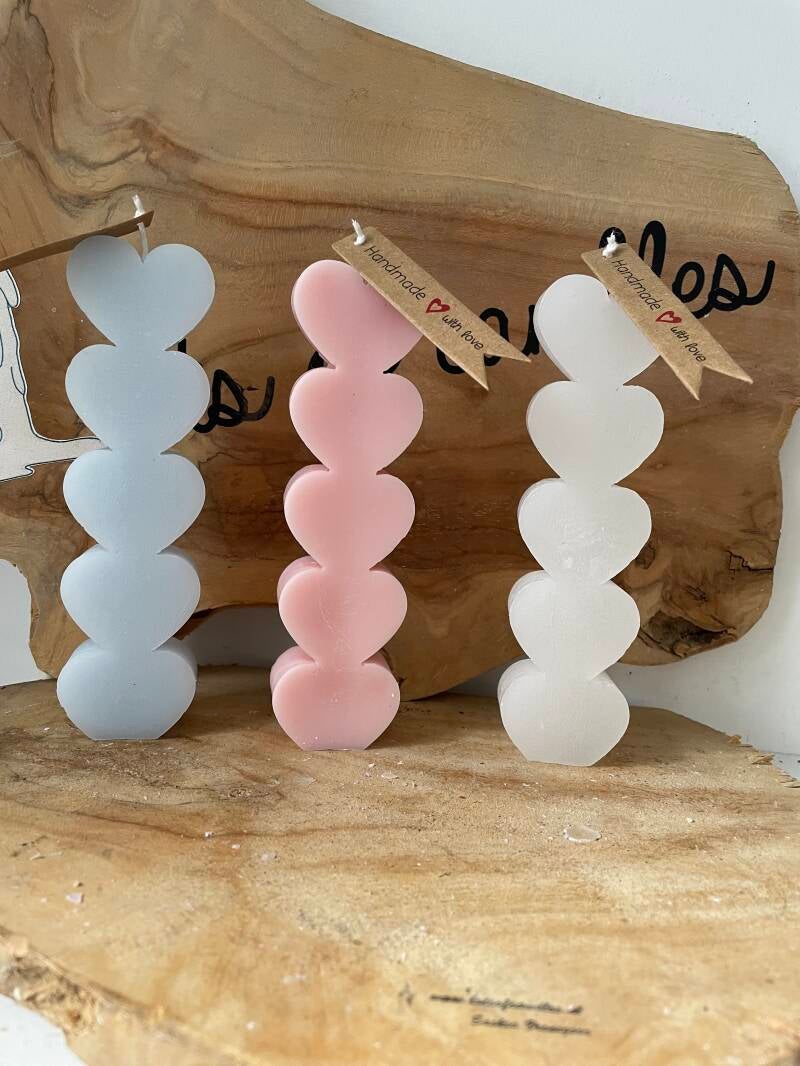Een leuke kaars die de vorm heeft van een stapel hartje. Ze zijn gemaakt van Parafine /stearine en hebben een lange brandtijd.